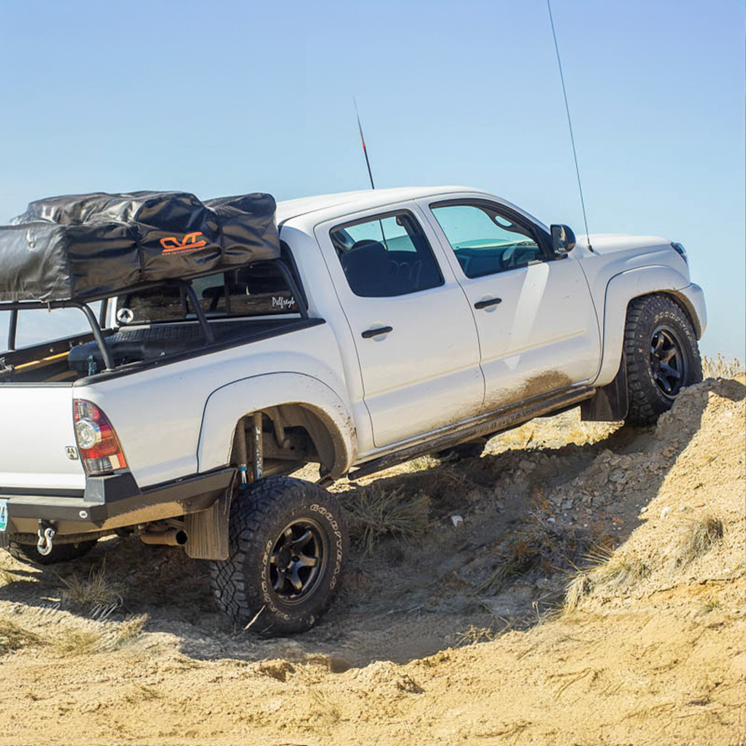 Add some protection and style to the rear end of your Tacoma. CBI's Bushmaster Rear Bumper increases the departure angle of your Tacoma and gives you the added flexibility of swing arms. Check out the key features below,