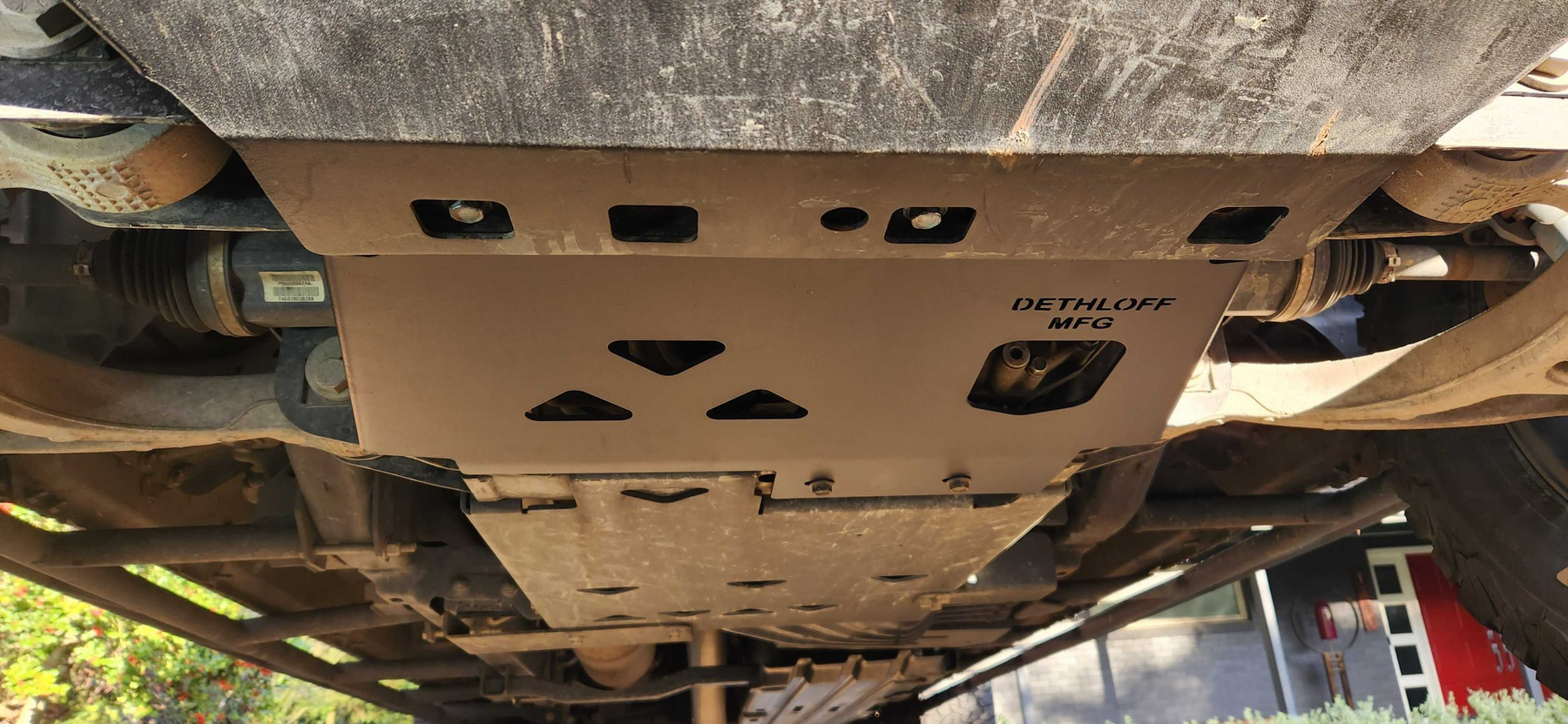 Installation: This armour is a bolt-on package with all necessary hardware included. Designed to work in conjunction with the Dethloff Engine/Transmission skid plate, an Expedition One front bumper & skid plate, and OEM protection elements.