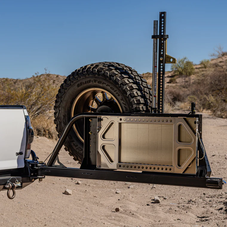 Introducing the DRT Fabrication Bolt On Tire Carrier/Swing Out, engineered to dramatically increase your Tacoma’s versatility. Designed with both form and function in mind, this swing-out provides a secure way to mount a spare tire along with essential gear such as a jack, fuel or water cans, rotopax, tools, and more. Every detail has been methodically designed.