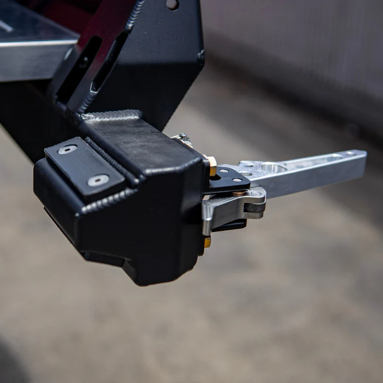 The swing-out hinge uses dual COM16 uniball bearings with aluminum misaligns and O-rings for durability, smooth operation, and resistance to water and debris. This ensures a quiet and long-lasting performance, no more dealing with cheap wheel bearings packed full of grease.