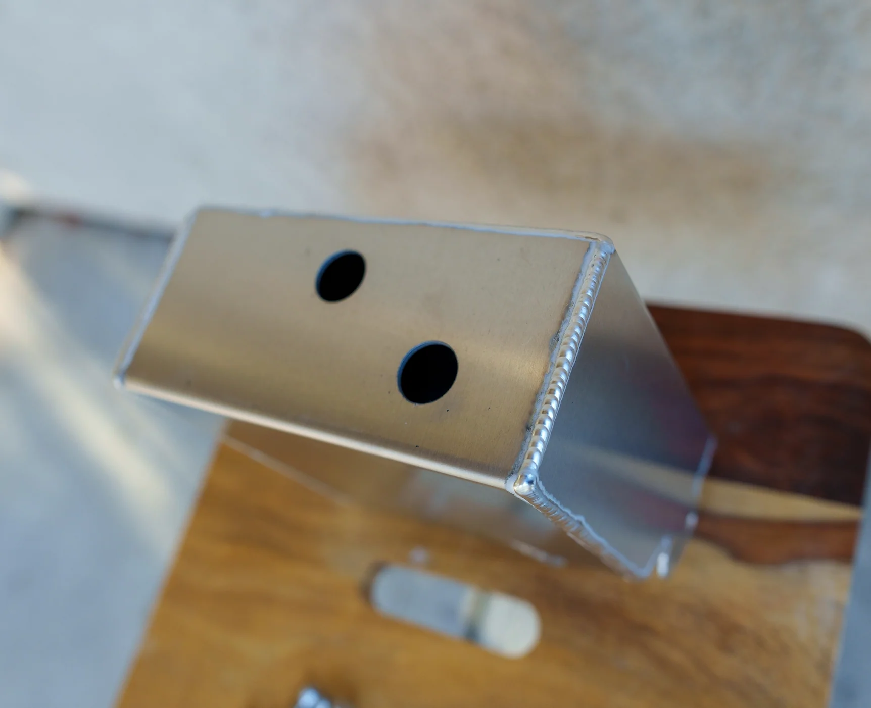 3rd Gen 4Runner and 1st Gen Tacoma washer fluid relocation reservoir. This replaces the factory washer fluid reservoir with a custom made aluminum reservoir. The reservoir sits behind the passenger side headlight and in front of the air box.