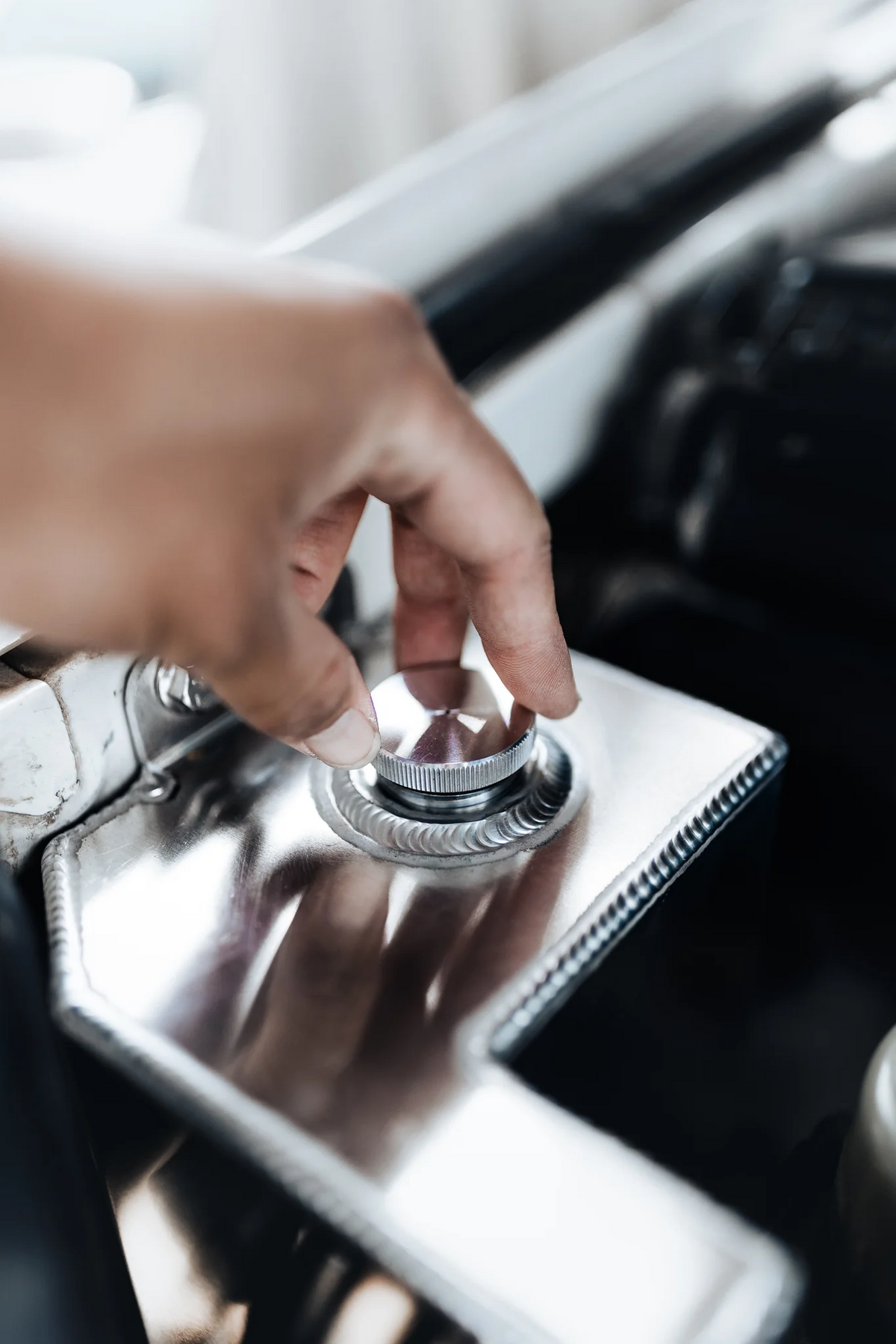 - Billet cap is vented with a stainless steel vent to allow inside pressure to equalize
