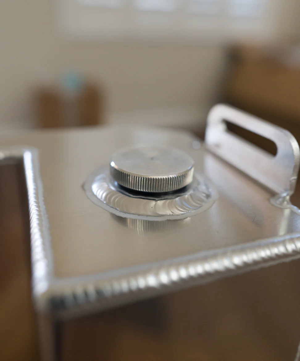 Introducing the 4th Gen 4Runner (03-09) washer fluid relocation reservoir. This replaces the factory washer fluid reservoir with a custom made aluminum reservoir. The reservoir sits behind the passenger side headlight and in front of the air box. Welded together from 5052 aluminum with a custom vented billet aluminum cap made from 6061 aluminum.