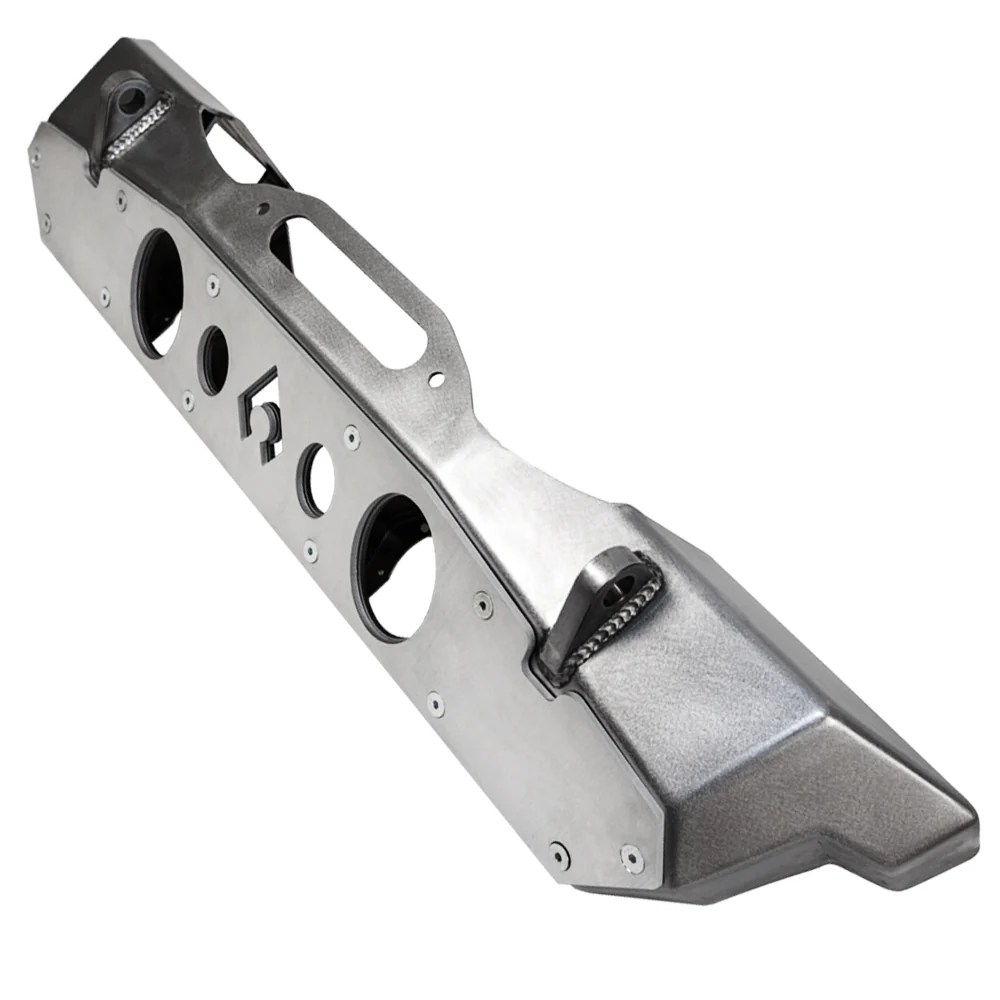 Dominate any off-road terrain with Artec Industries’ Nighthawk Armour Bumper. Engineered for adventure and crafted with iconic Artec style, this bumper is made in the USA from CNC laser cut and formed steel, with internal gussets for maximum strength. Features a ¼" thick winch plate for ultimate rigidity, it is also compatible with LED square style or OEM LED fog lights without the need for drilling. Available in bare steel and equipped with a ¼" thick aerospace aluminum rock guard, it’s the perfect bumper for any off-roading enthusiast.