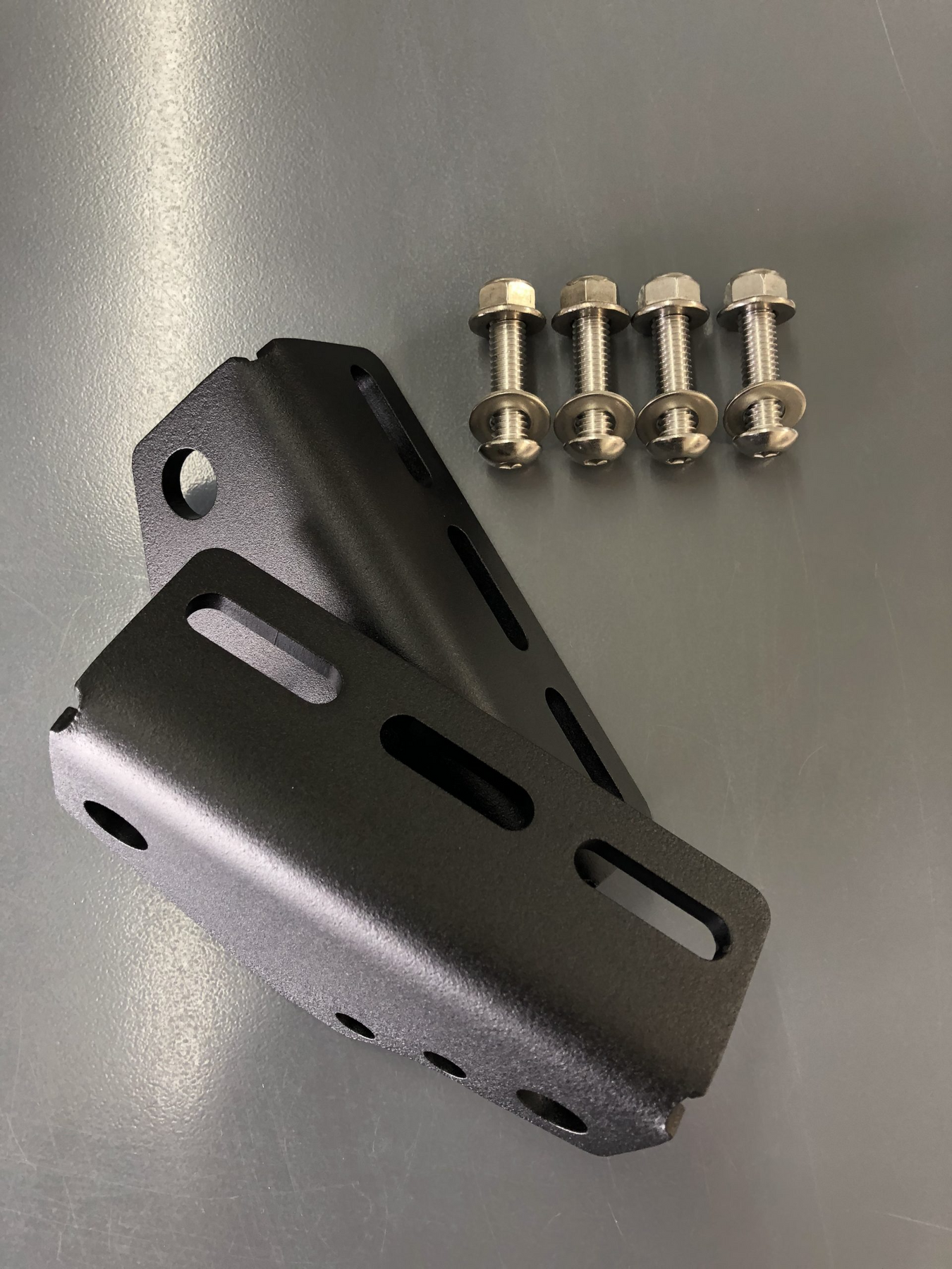 These Awning Brackets bolt to the mounting brackets on the crossbars of a RamBox or Standard Bed Contour Rack, and are designed specifically for the Rhino Rack Batwing Awning. These brackets sit a little higher to clear RamBoxes as they open. Brake formed from 1/4″ steel, these brackets are very stout, and include stainless steel hardware to mount the brackets to the rack’s crossbars; mounting hardware for the awning itself should be included by the awning manufacturer.