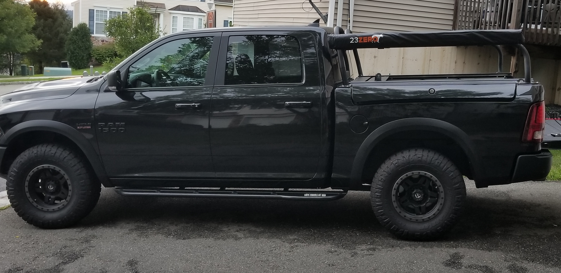 These Awning Brackets bolt to the mounting brackets on the crossbars of a RamBox or Standard Bed Contour Rack, and are a universal fit for awnings that utilize common mounting dimensions. These brackets sit a little higher to clear RamBoxes as they open, but still sit below the top of the crossbars. Welded from 1/4″ steel, these brackets are very stout, and include stainless steel hardware to mount the brackets to the rack’s crossbars; mounting hardware for the awning itself should be included by the awning manufacturer.