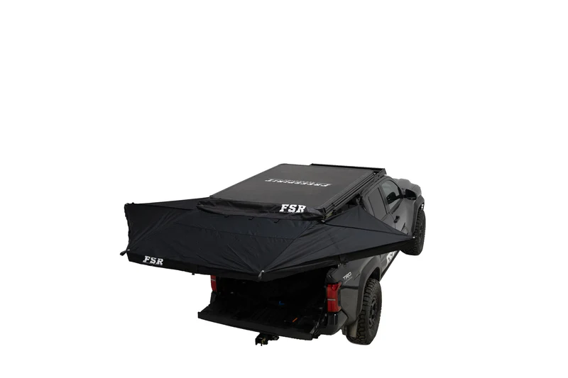 Designed specifically for use on the rear of FSR hardshell tents (Evolution XL, Aspen XL, OdysseyXL), on the side of any hardshell tent or directly mounted to any roof rack or bed rack. Cover your tailgate space from the parking lot to the campsite. A second option would be used as a smaller 180 degree awning for smaller SUVs or crossovers on the side of the vehicle.