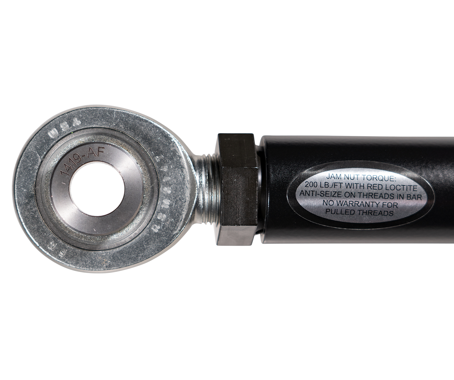 Carli Track Bars are 3/8″ wall DOM construction, FAR stronger than the brackets to which they’re bolted. This wall-thickness allows the end of the bar to be threaded to accept Carli's 7/8″ x 7/8″ FK Bearing Chromoly Heim Joint. You’ll see many manufacturers running thinner wall and weld-in bungs. Running thicker wall bar allows for more strength and one less welded joint – a potential point of failure. In place of a standard Jam-Nut, Carli developed a tapered jam nut (mating surface similar to a lug nut) to ensure perfect centering of the joint while providing 100% more surface area than a standard Jam-Nut. Carli has taken a design used in off-road racing (Tube with weld-in bungs and jam nuts) and improved it to be FAR more reliable.