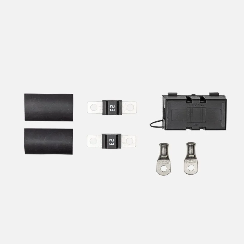 The REDARC 100A version is designed for SBI installations. The 23A and 30A fuse kit comes with (1) fuse holder, (2) fuses, cable crimps, and a detailed instruction sheet. The 40A and 60A fuse kits comes with (2) fuse holders, (4) 40A fuses, cable crimps, and a detailed instruction sheet.