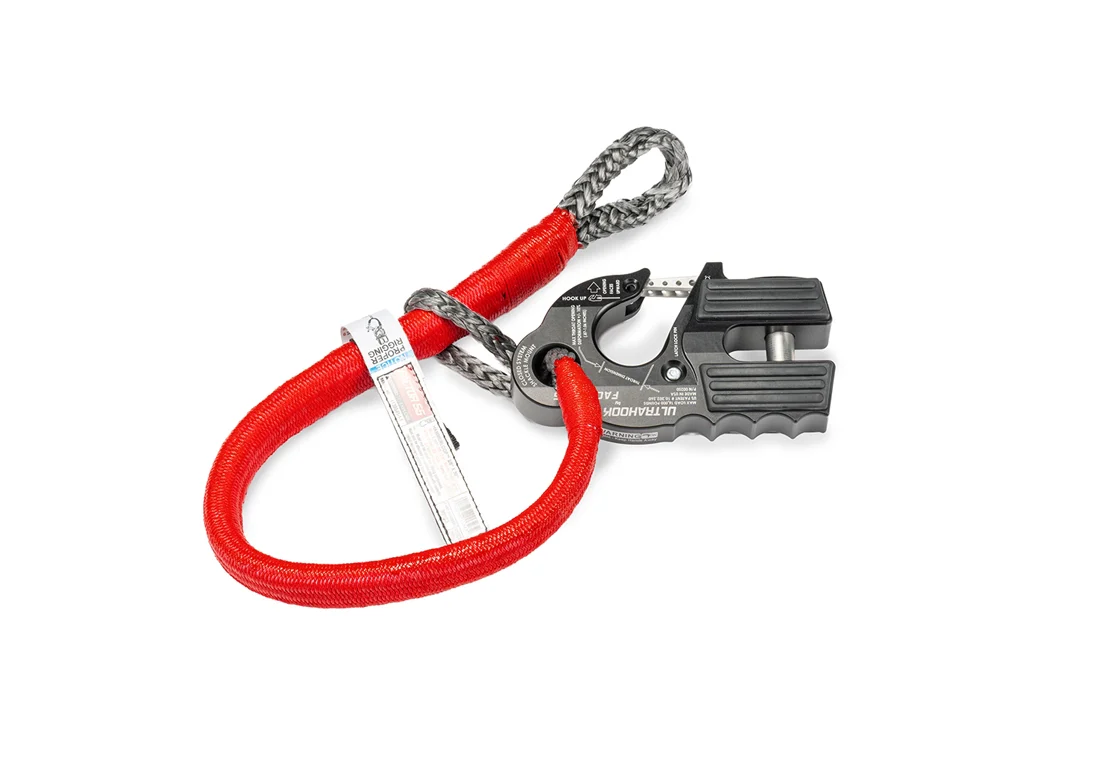 The HammerLoop seamlessly attaches to the UltraHook, streamlining recovery point setup. Its unique design allows for quick attachment through a wheel, around a roll cage, or via the eyelets of any strap, offering unparalleled versatility in rigging options. Weighing just 10 ounces, the HammerLoop is lightweight yet incredibly strong, boasting an impressive 27,800 lbs minimum breaking strength (MBS). Each HammerLoop is individually serialized for material lot traceability, ensuring the highest quality standards.