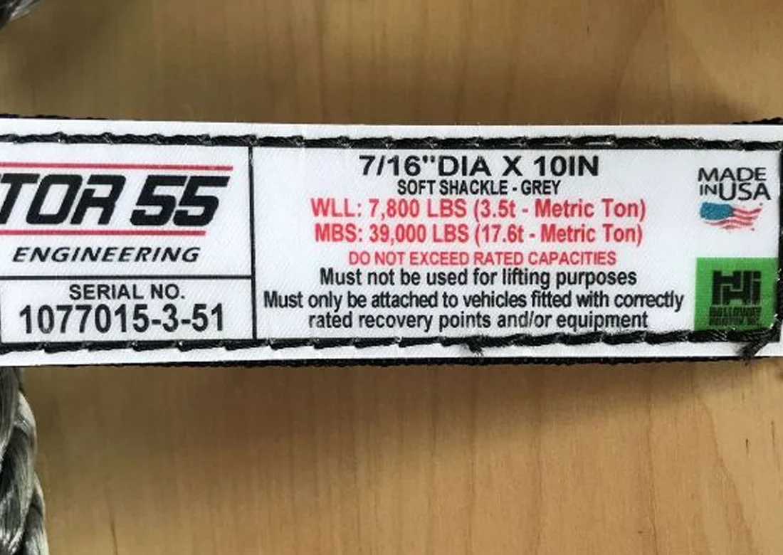 - Each individual soft shackle is serialized for manufacturing date and material lot traceability.