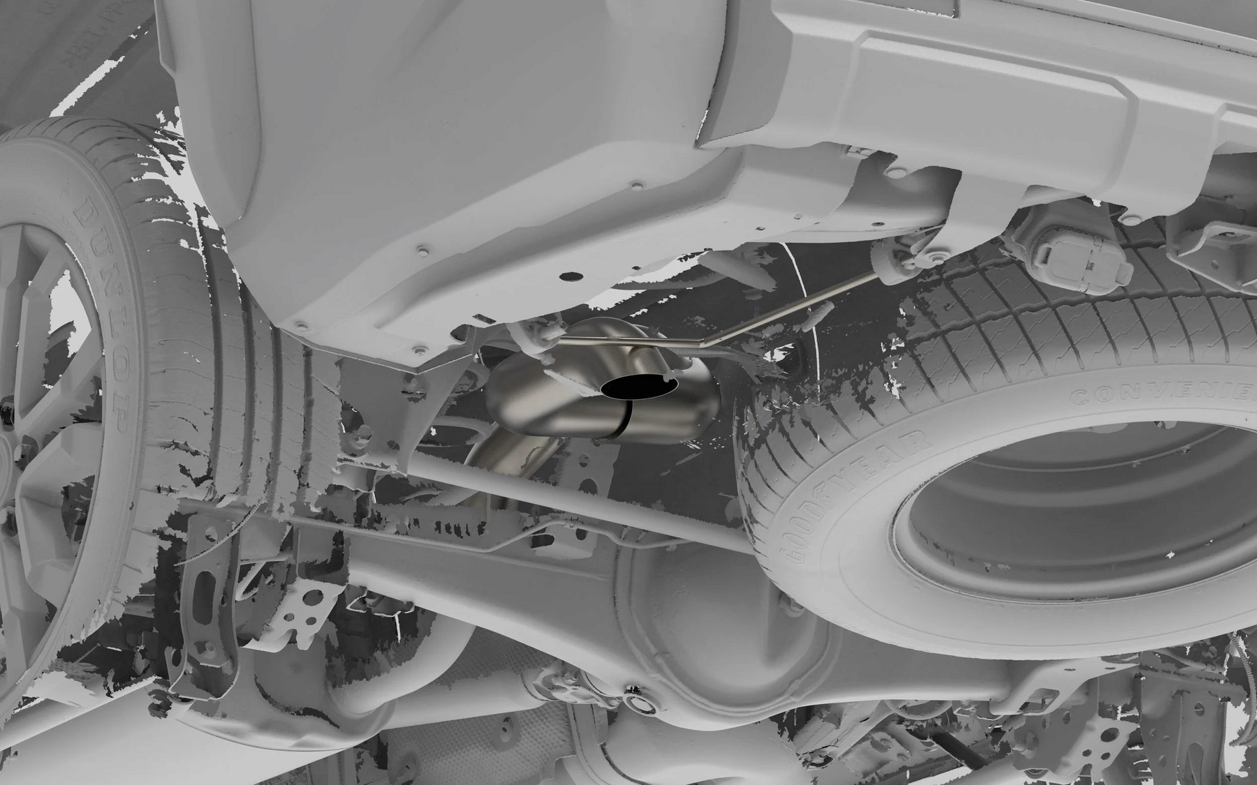 This exhaust replaces the factory rear (axle-back) section, providing increased clearance for off-road use, enhanced exhaust sound, and 10–15 lbs. of weight savings. On the 4Runner, this axle dump exhaust increases volume by approximately 5–10%, giving a slightly deeper tone. Testing shows idle volume increases by about 5 dB, and 7 dB at the top end.