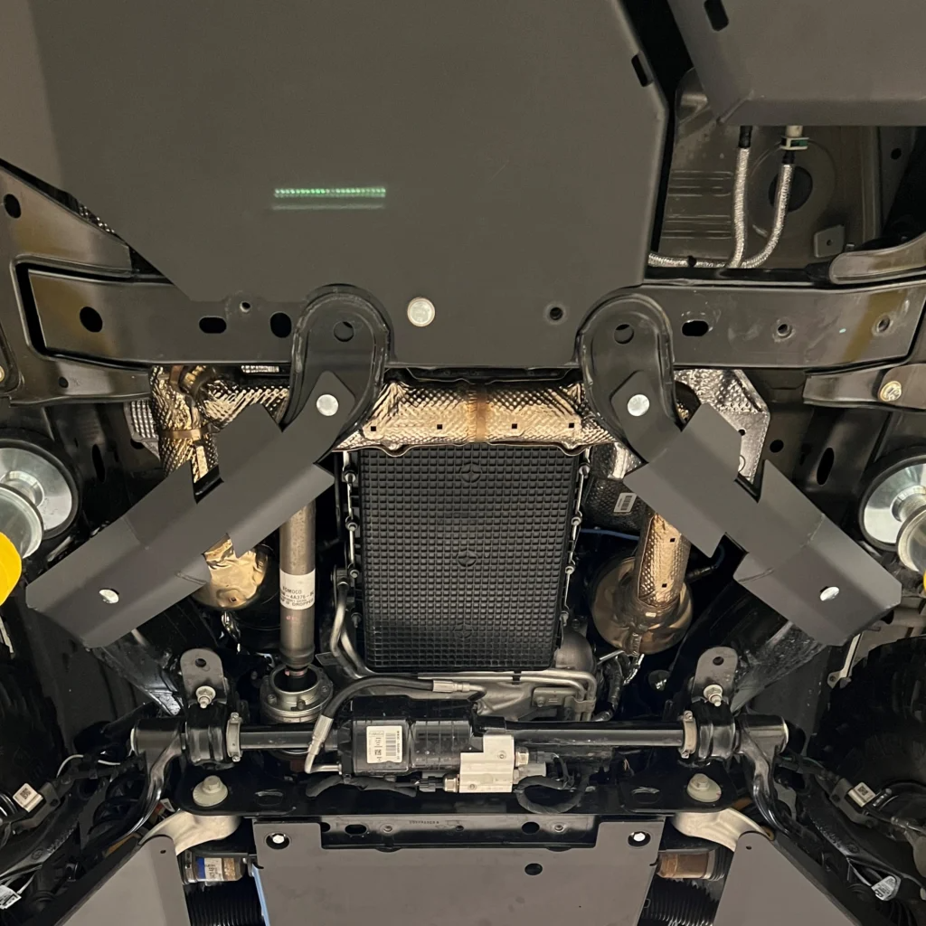 Built with CNC laser cut 3/16″ steel, these plates are custom fit to protect the crossmember skids on of all 2021+ Broncos as well as 2024+ Ranger with premium quality, fit and finish.
