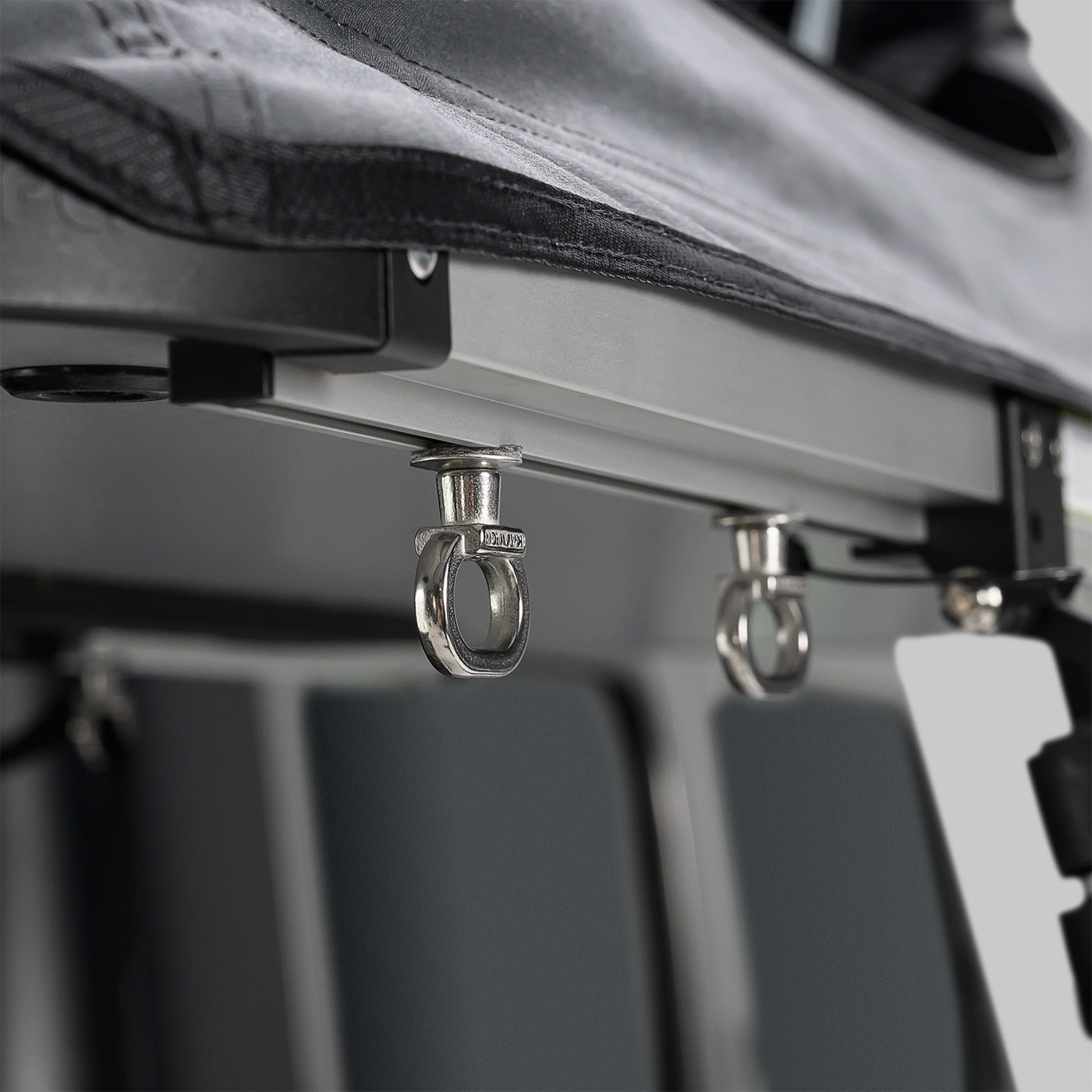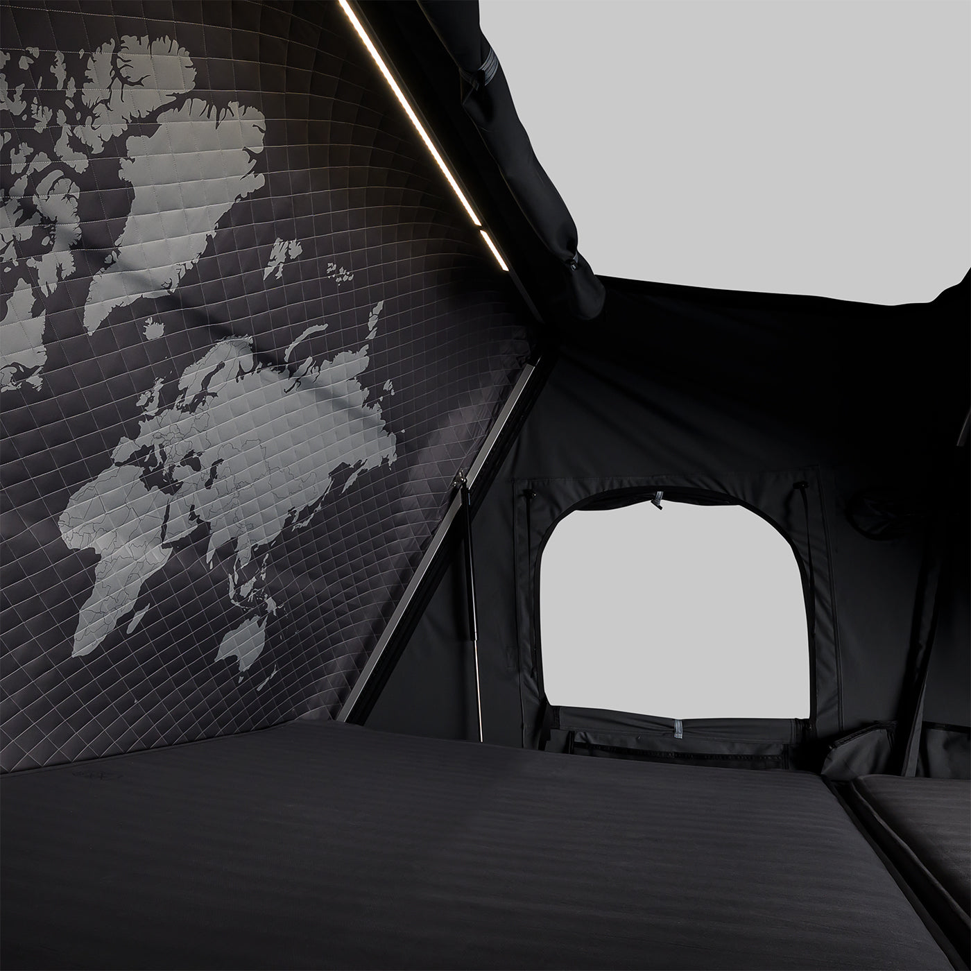 Inside the tent, improved geometry creates more usable space where it matters most. Larger doors and windows increase airflow and visibility, making the Skycamp 4.0 feel more open and comfortable than ever. We’ve also added thoughtful convenience features like integrated interior lighting, duct and electrical pass-throughs, and optional air mattress systems.