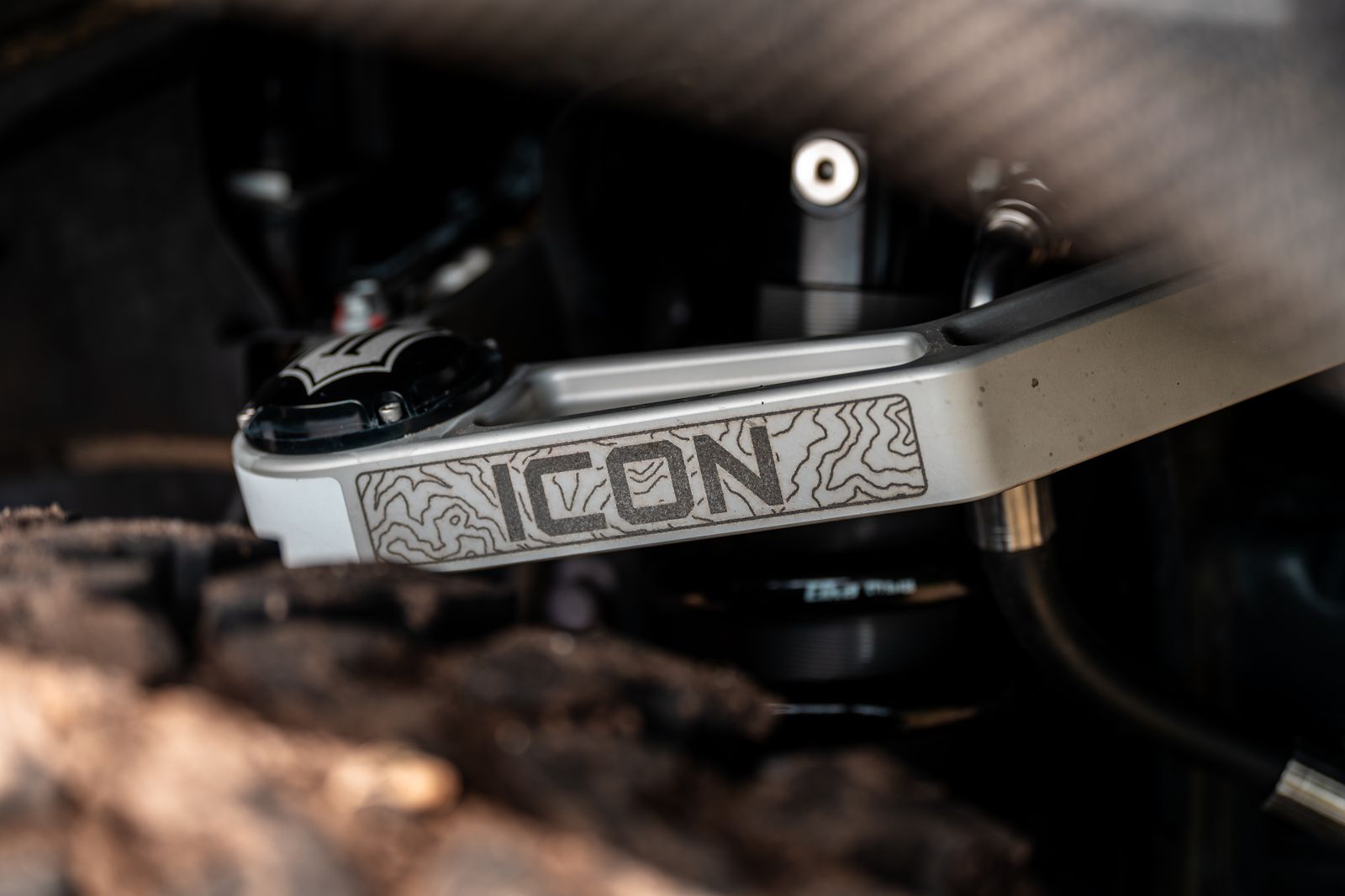 The truck rides on Elka 2.5 DC Reservoir Coilovers and Shocks paired with Icon Billet Adjustable UCAs, Rear Links, and Adjustable Track Bar for superior handling and articulation. A KRAVE Track Bar Relocate and Durobumps Bump Stops Front and Rear keep everything planted and controlled even in the roughest terrain.